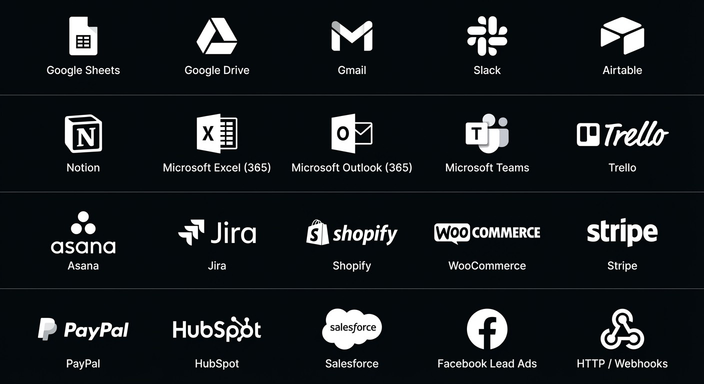 העוזר שלך עובד דרך הכלים שאתה כבר משתמש בהם — יומן, CRM, וואטסאפ, מערכות כספים ושיווק — ומאפשר לך להפעיל הכול משיחה אחת פשוטה.